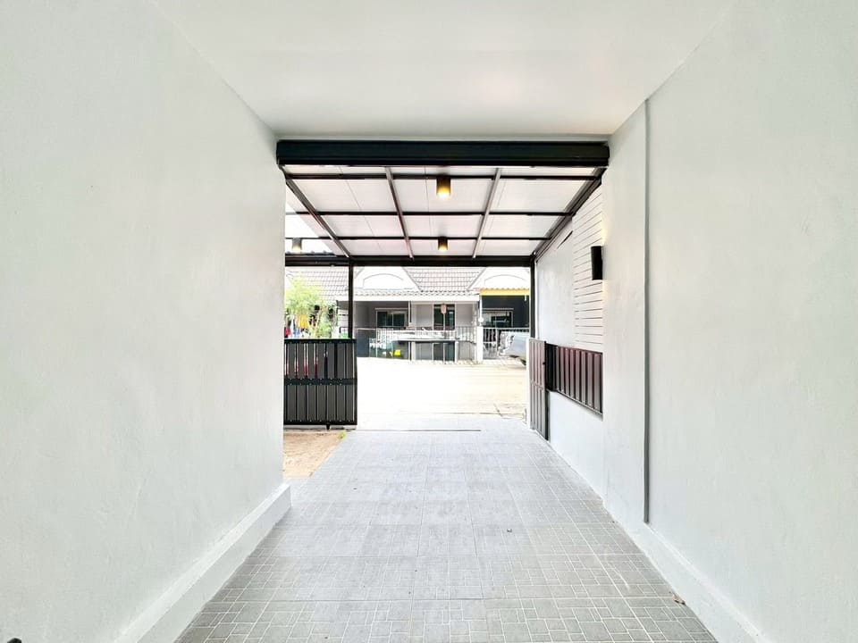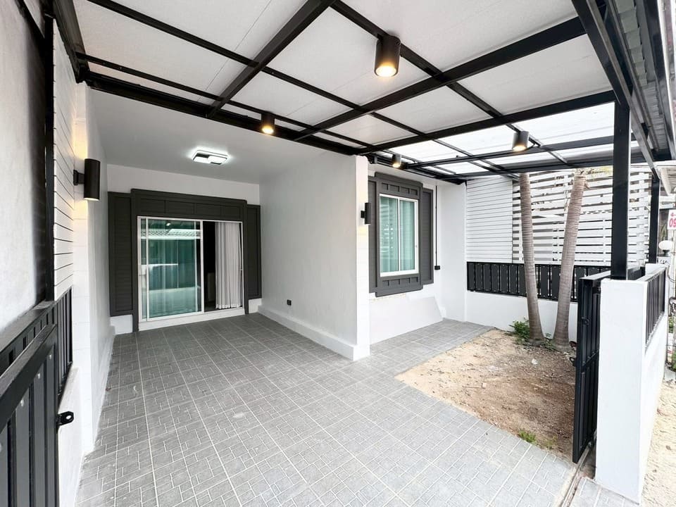 房屋售价为 2,190,000 泰铢,土地面积 23 平方哇(约 92 平方米)。为单层住宅结构,户型包括 2 间卧室、2 间浴室,配有 1 个厨房及 1 个停车位,并设有前庭院及围栏。房屋已完成翻新,可直接入住。整体外观采用现代简约设计,灰白色立面搭配金属围栏,车库地面已铺设防滑瓷砖,屋顶及主体结构维护状况良好。