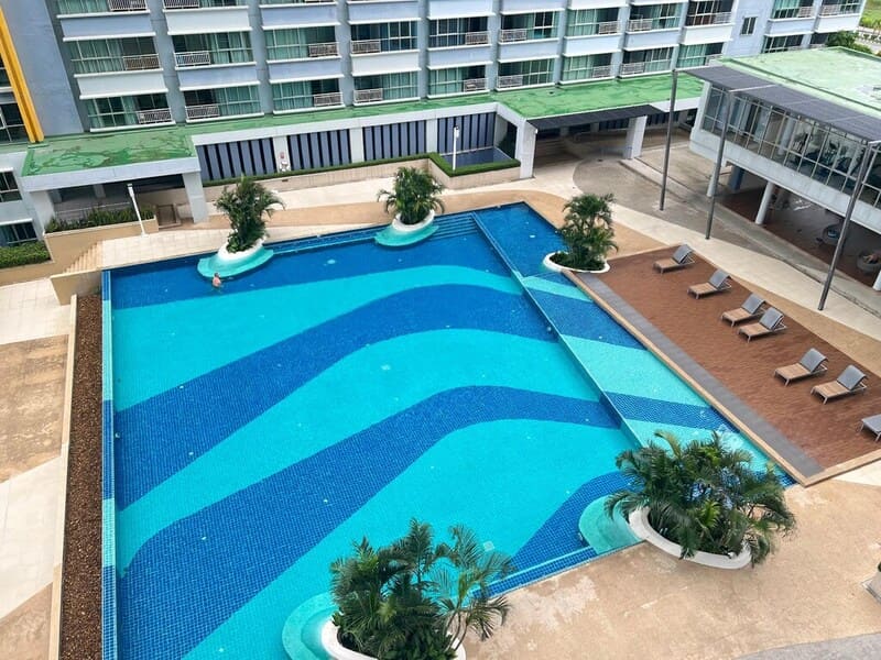 The project is located next to Jomtien Beach Road in Pattaya. The beach is just across the beach road and there are songthaews. There are convenience stores, supermarkets, night markets, and various restaurants on the beach road. There is a 7-11 convenience store, ATM, water purifier, laundry room, etc. in the apartment, making life very convenient.