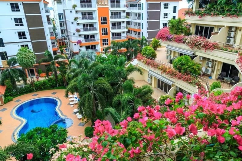 This apartment is located in Phratamnak 4 Lane in the Phratamnak area of Pattaya, close to Asia Pattaya Hotel Golf Course (400 meters) and 700 meters from Paradise Beach Pattaya. There are convenience stores, restaurants, etc. around. It is a 800-meter walk to the central area of the seaside commercial street on Phratamnak 5 Road and 1.1 km from Yinyom Beach. Yinyom Beach is a popular tourist attraction surrounded by Pattaya Water Park, Seaside Park, Pattaya Park Tower Restaurant, Park Night Market, etc.