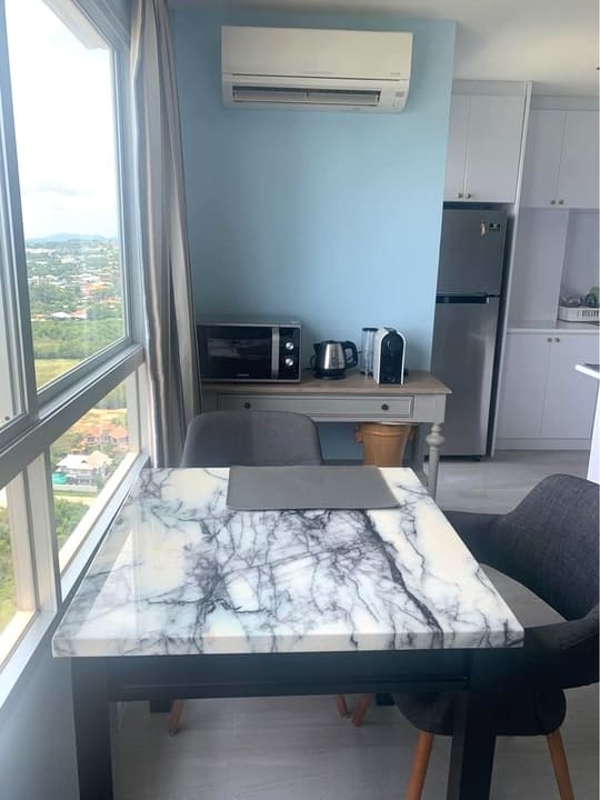 The project is located next to Jomtien Beach Road in Pattaya. The beach is just across the beach road and there are songthaews. There are convenience stores, supermarkets, night markets, and various restaurants on the beach road. There is a 7-11 convenience store, ATM, water purifier, laundry room, etc. in the apartment, making life very convenient.