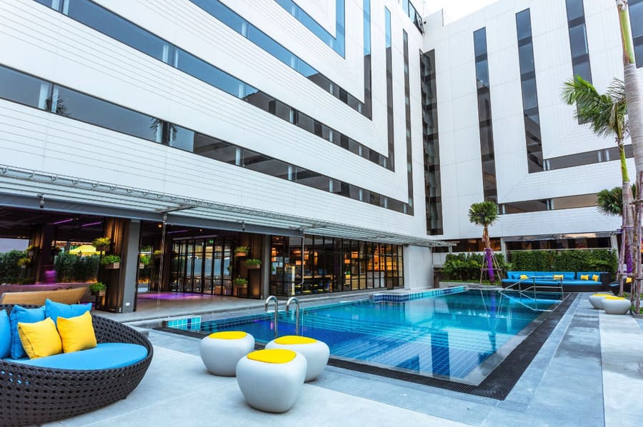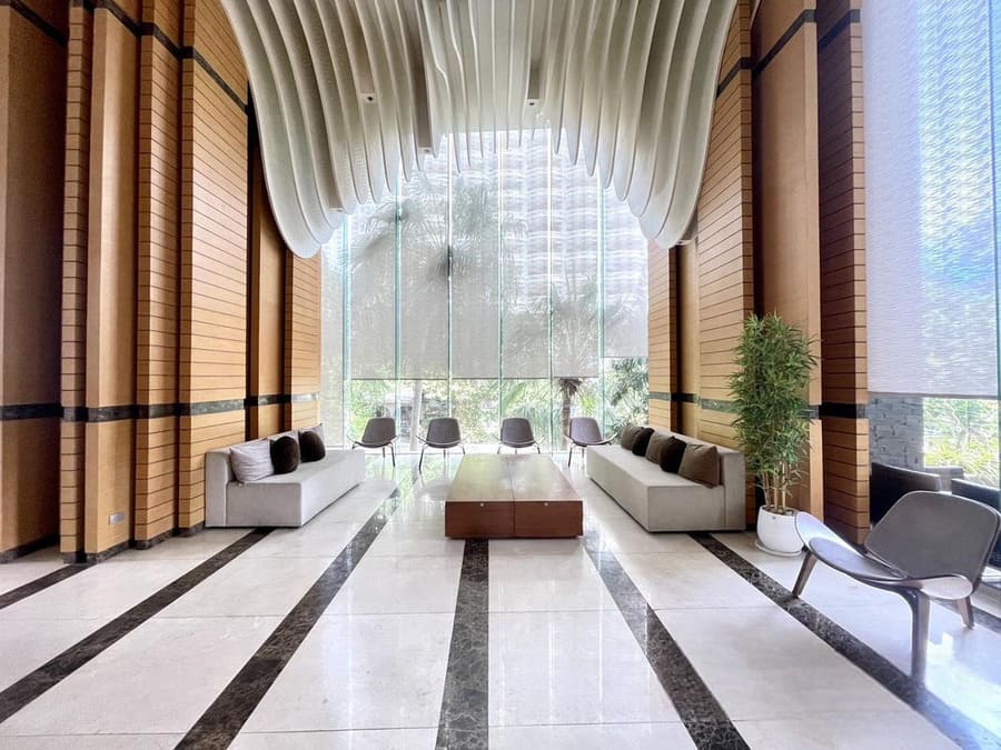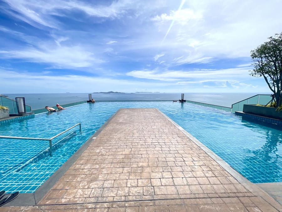 The project is located in Wongamat Beach, a high-end residential area, with direct access to the beach and elevators to the rooms. It is 120 meters from the beach, surrounded by convenience stores and markets, and 2.5 kilometers from Terminal 21 shopping mall.