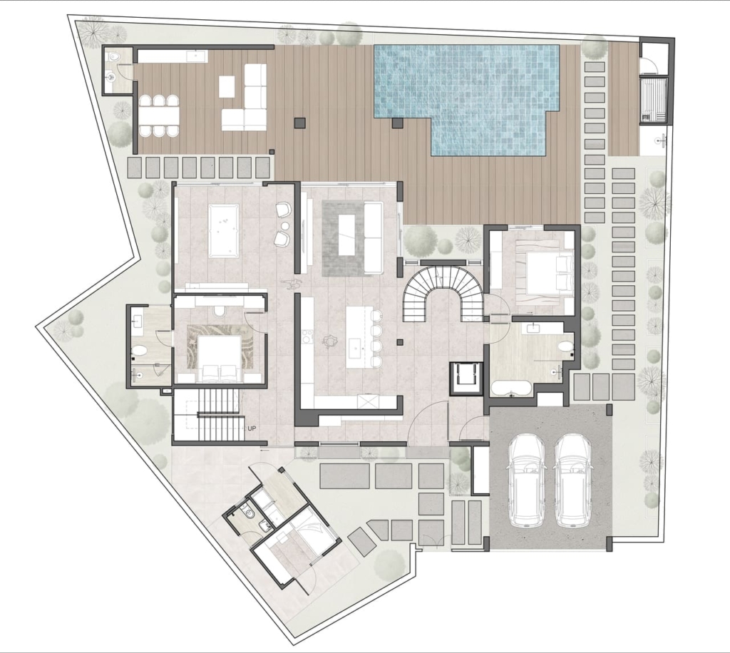 Layout: Open-plan living with seamless pool access 布局:开放式起居空间,可无缝通往泳池 Bedrooms: 2 + 1 (maid’s quarters) 卧室:2 + 1(女佣宿舍) Bathrooms: 4 (including maid’s bathroom) 浴室:4间(包括女佣浴室)