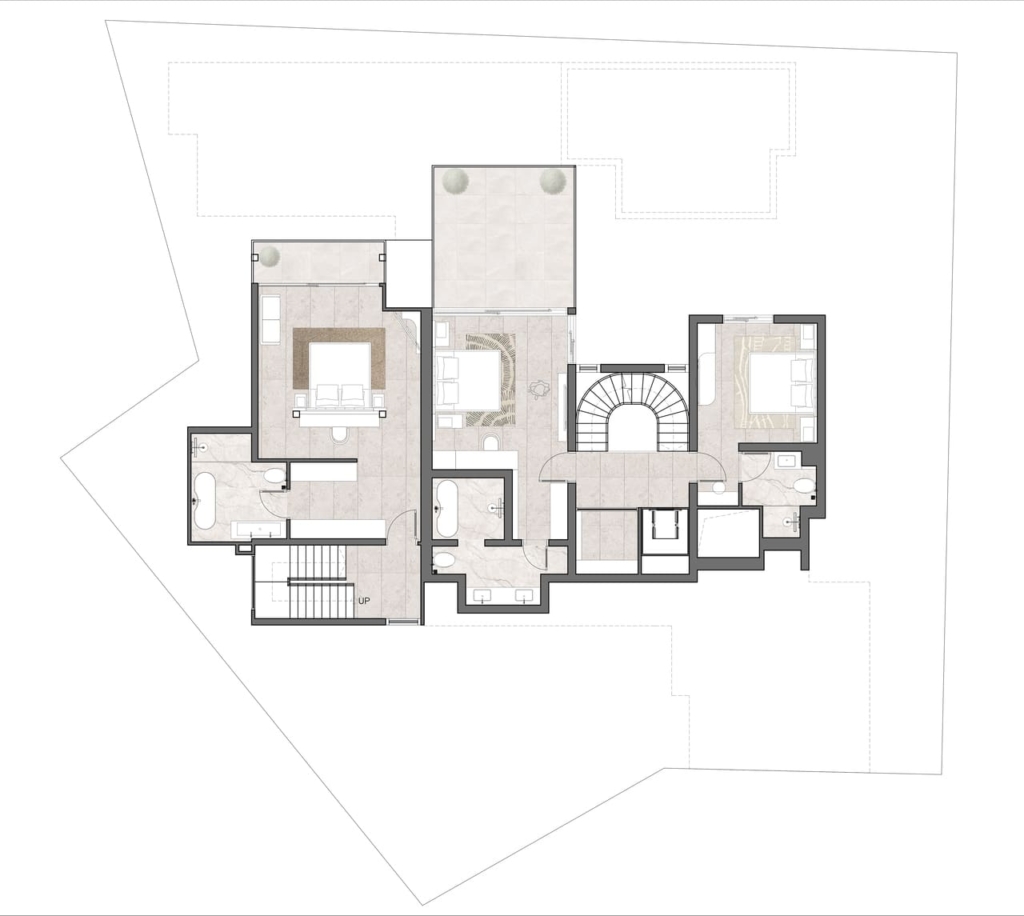 Layout: Private bedroom sanctuary with entertainment space 布局:带娱乐空间的私人卧室 Bedrooms: 3 (including master suite) 卧室:3(包括主卧) Bathrooms: 3 (all en-suite) 浴室:3(全部为套间)
