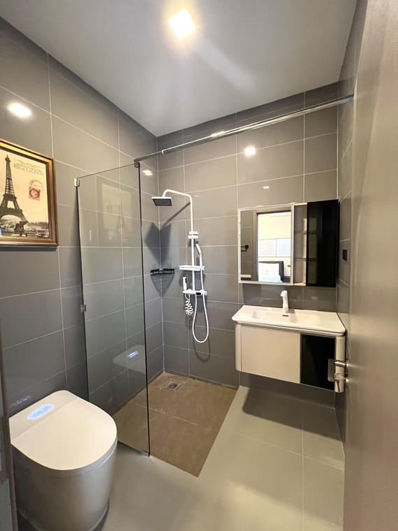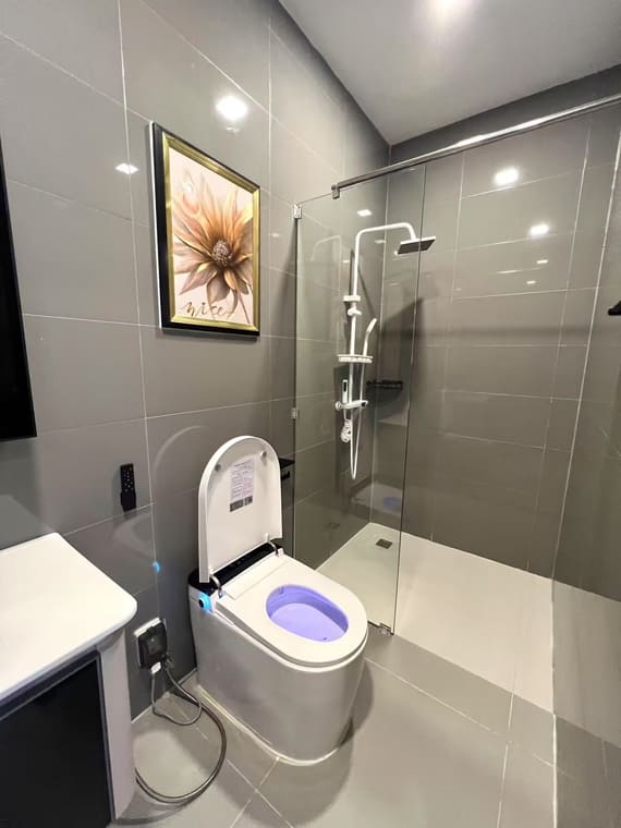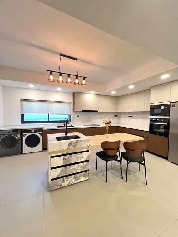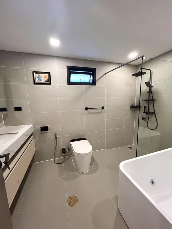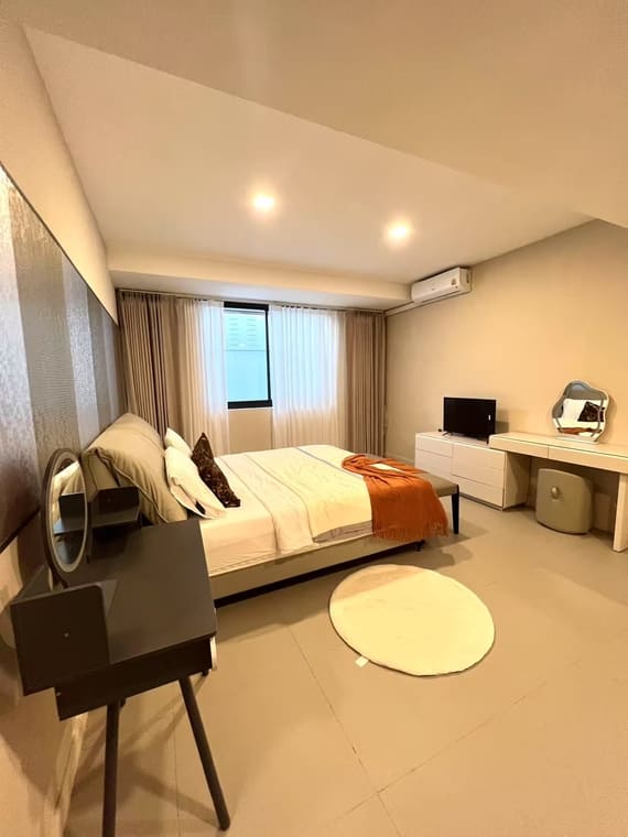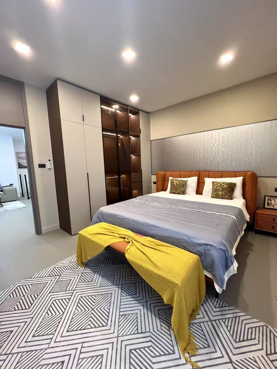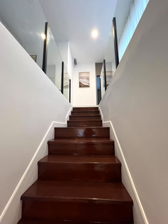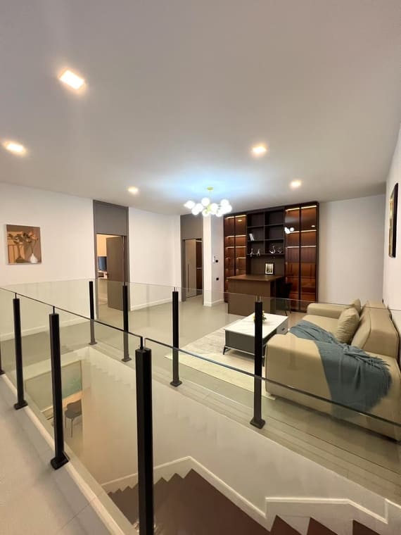This villa is located in South Pattaya, close to Walking Street. The land area is 396 square meters, with a built-up area of approximately 400 square meters. It features six bedrooms and seven bathrooms, a European-style kitchen, and is fully furnished with all appliances. Parking is available for one or two cars. The pool measures 4.5 x 10 meters, with a depth of 1.1 to 1.5 meters.