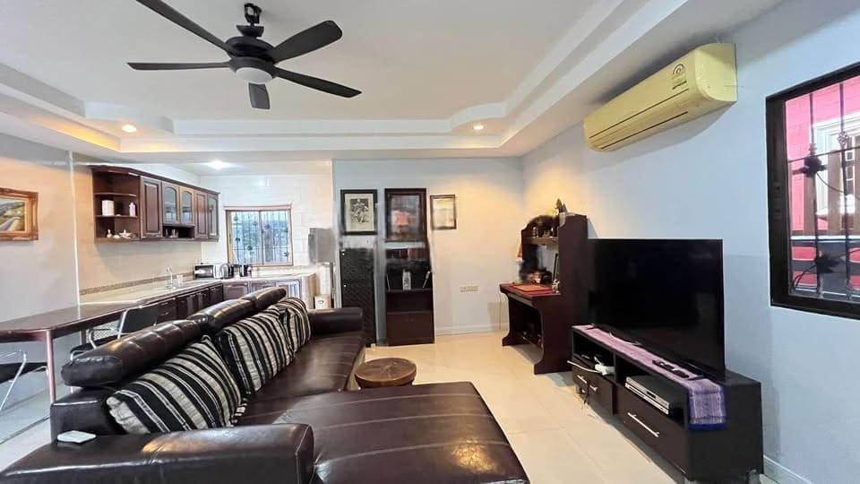 这套独栋别墅位于芭提雅南区 Thappraya Road(塔普拉雅路),紧邻知名水系公寓 Arcadia Beach Resort 1,属于南芭堤雅成熟且长期受欢迎的居住板块。别墅建筑面积约 122 平方米,3 房 2 卫,户型实用、私密性好,适合家庭自住或作为稳定出租物业。租金 20,000 泰铢/月(年租),售价 3,750,000 泰铢,在同区域独栋住宅中性价比较突出。Thappraya Road 作为连接芭提雅市中心、帕山(山顶大佛寺)及中天的核心主干道,交通便利,生活氛围成熟。