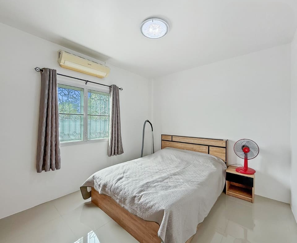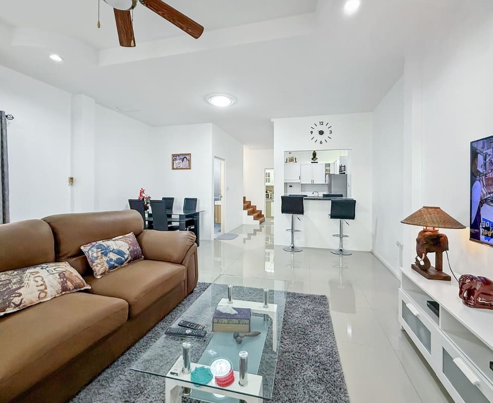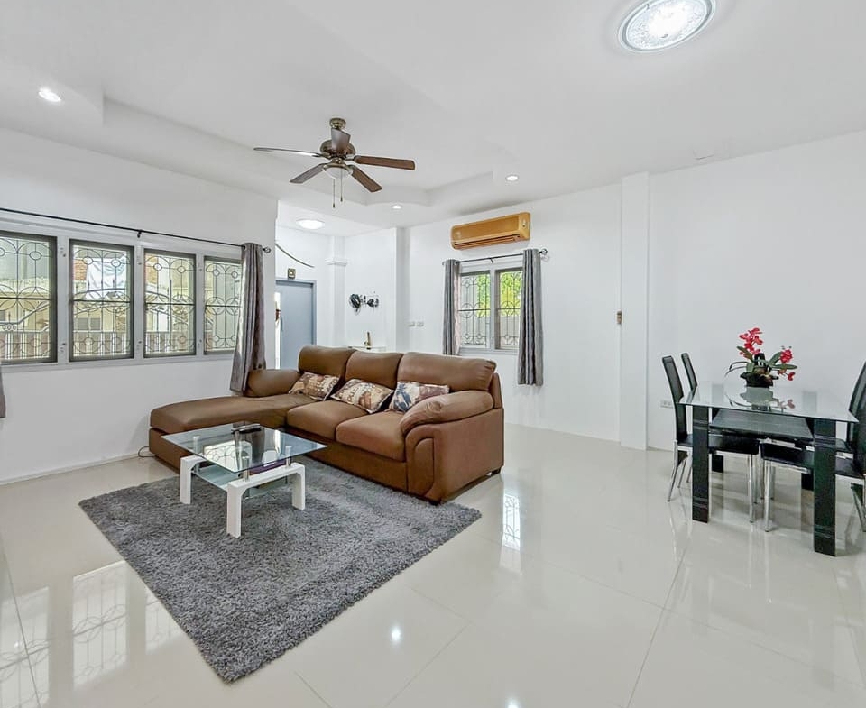 这套位于芭提雅东区 Khao Talo 的联排别墅现以 295 万泰铢出售,整体性价比突出,兼具自住舒适性与投资潜力。房屋为 2 房 2 卫设计,土地面积 112.8 平方米,室内使用面积约 120 平方米,空间布局方正实用。一楼设有宽敞明亮的客厅与餐厅区域,采光充足,配备欧式厨房及独立泰式厨房,满足不同烹饪需求。两间浴室已升级改造,提升整体居住体验;屋顶露台则提供额外户外空间,可打造为休闲区或娱乐区,增强生活品质与使用弹性。