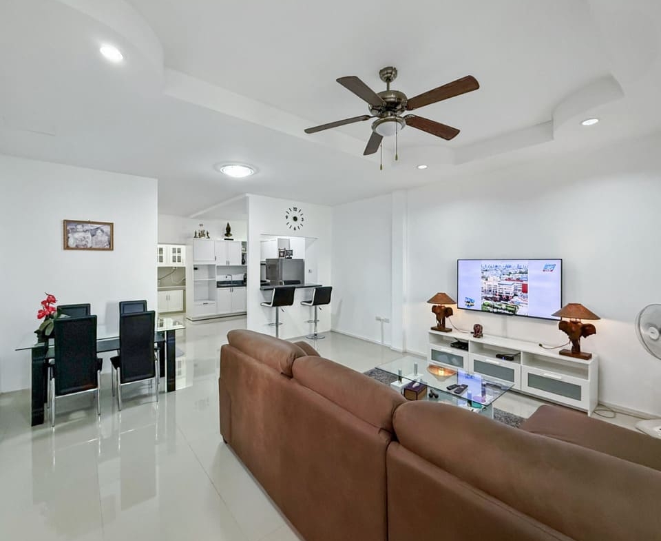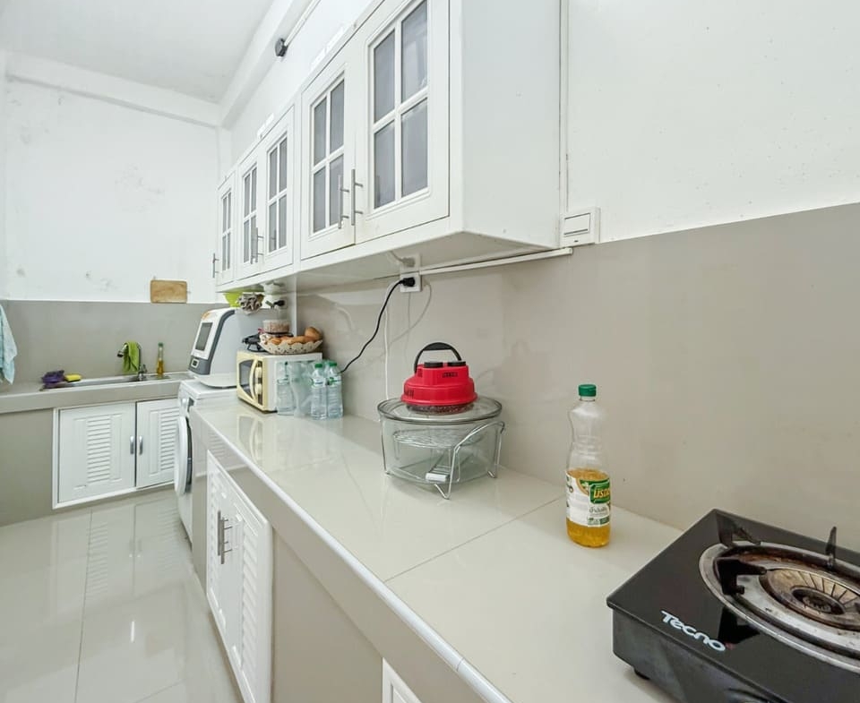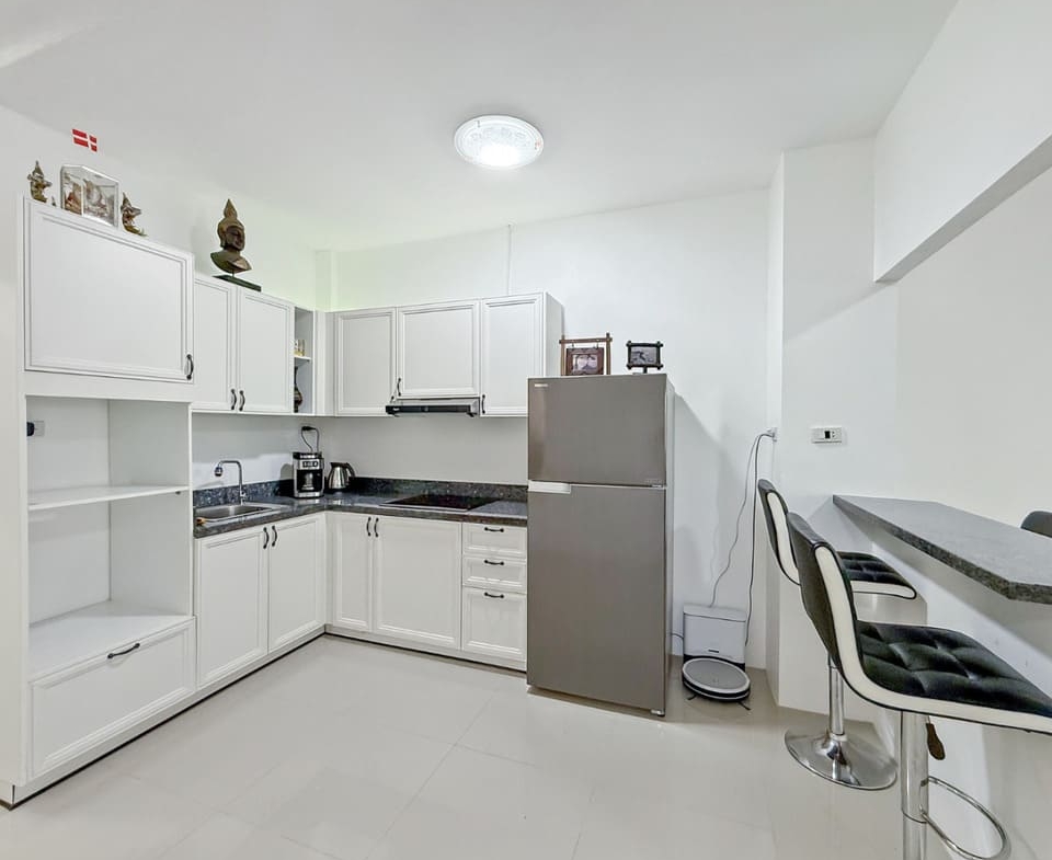 This townhouse in East Pattaya (Khao Talo) is offered at 2.95 million THB, representing excellent value for both homeowners and investors. The property features 2 bedrooms and 2 bathrooms on a 112.8 sqm land plot with approximately 120 sqm of living space. The ground floor offers a bright and spacious living and dining area, along with a European-style kitchen and a separate Thai kitchen for added functionality. Both bathrooms have been upgraded, and a rooftop terrace provides additional outdoor space ideal for relaxing or entertaining.
