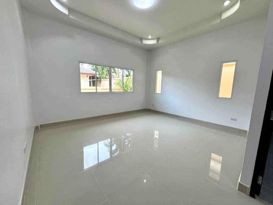 This renovated villa is located in a well-established residential area in the northern part of East Pattaya, offering a quiet and private environment. Designed in a modern Thai style, the property has been fully renovated and is currently unfurnished. With a land size of approximately 95.6 square wah (about 382 sqm), it provides generous space for comfortable living.