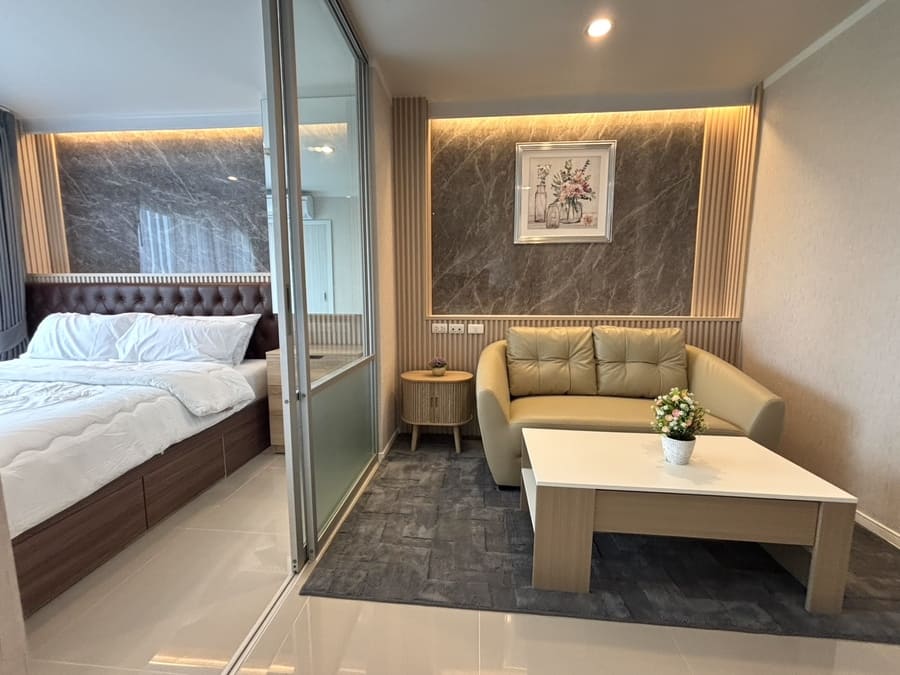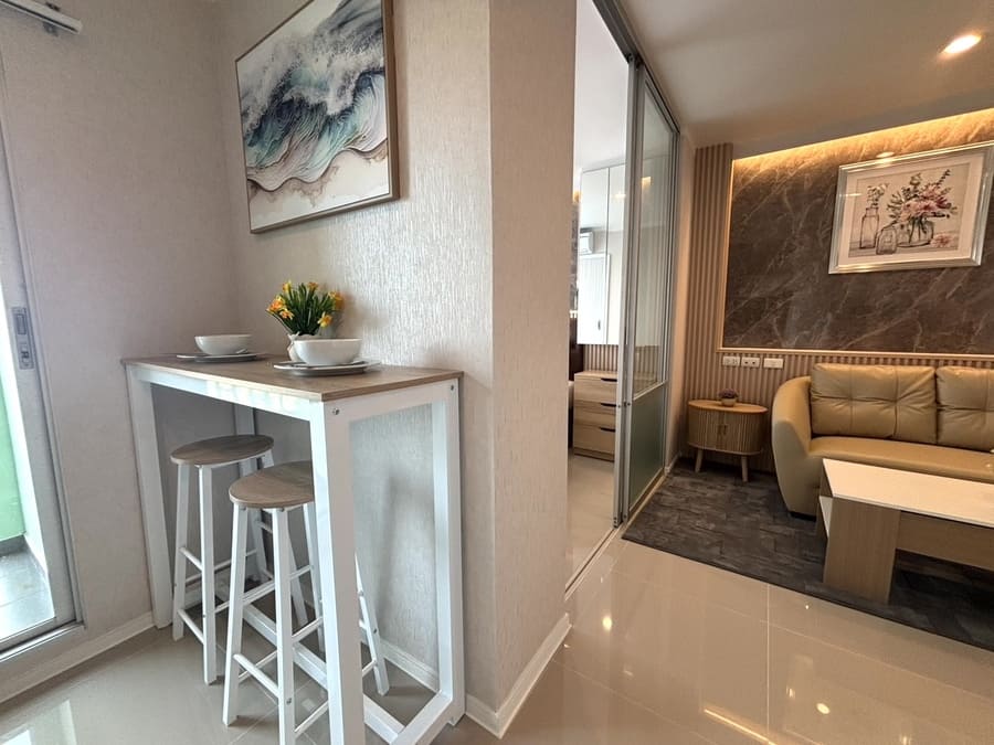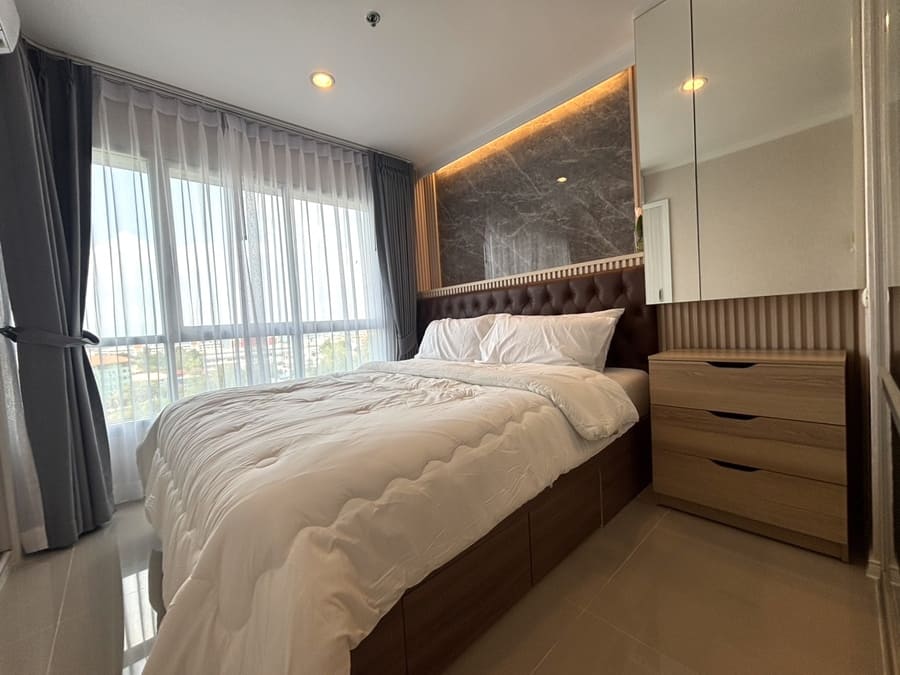 The project is located in the Wong Amat Beach area of Pattaya. Located in a bustling downtown area, the community has a 7-11 convenience store and an ATM; it is surrounded by the Lotus Supermarket flagship store (with a Decathlon sporting goods store inside), Rome Night Market, and various restaurants. It is 1 km from the beach and about 800 meters from Terminal 21.