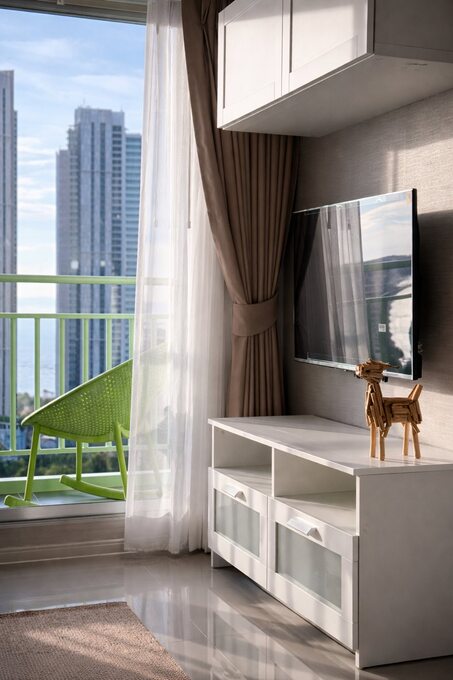 The project is located in the Wong Amat Beach area of Pattaya. Located in a bustling downtown area, the community has a 7-11 convenience store and an ATM; it is surrounded by the Lotus Supermarket flagship store (with a Decathlon sporting goods store inside), Rome Night Market, and various restaurants. It is 1 km from the beach and about 800 meters from Terminal 21.
