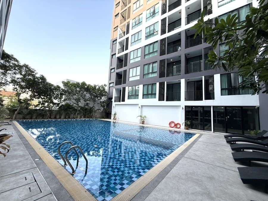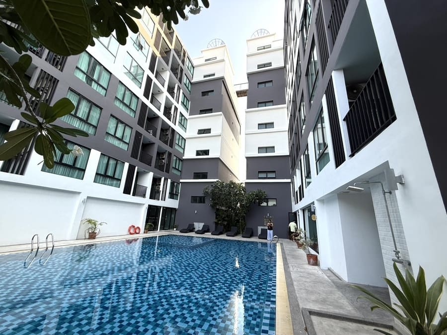 里欣酒店式公寓(The Rizin Hotel & Residences)位于芭提雅南区 Thappraya 路沿线,处于芭提雅市中心与中天海滩之间的核心连接地带。项目邻近阿卡迪亚水系公寓一带,区域居住氛围成熟,兼具城市便利与安静环境,既可快速通达市区繁华区域,又远离主干道喧嚣,属于芭提雅典型的优质居住板块。 The Rizin Hotel & Residences is located along Thappraya Road in South Pattaya, strategically positioned between Pattaya City Center and Jomtien Beach. The project is situated near Arcadia Beach Resort Pattaya, within a well-established residential neighborhood that offers both convenience and a peaceful living environment.