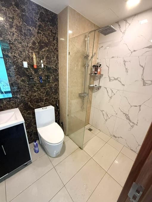 The project provides an excellent resort living experience and is also equipped with first-class luxury facilities, such as: 4,000 square meters of lagoon swimming pool, diving bed and surfing area, artificial beach area; “Jacuzzi Cave”, Tropical Islands, Pool Bar, Terrace Restaurant , a beach club with a rooftop bar, a fully equipped fitness center, a large green area and more.