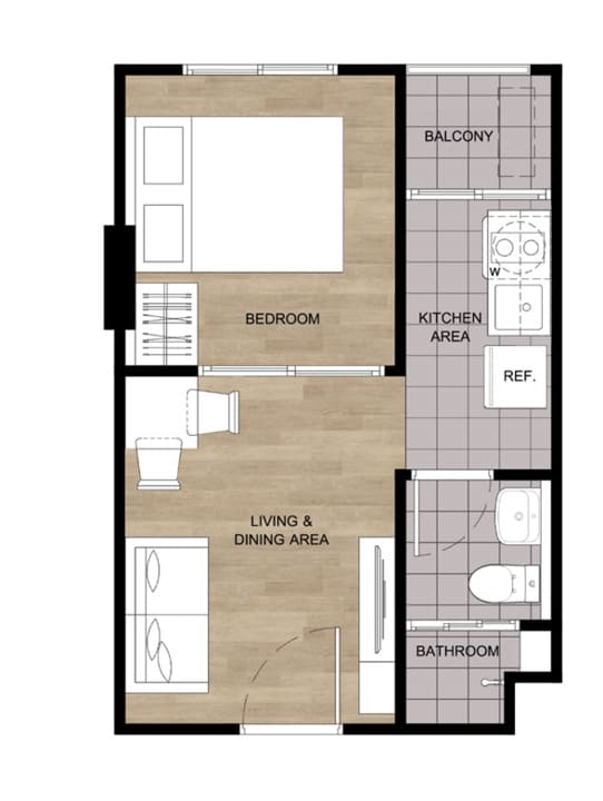 ▼ 一居室 A户型(Type 1A)23.75-24.75 sqm