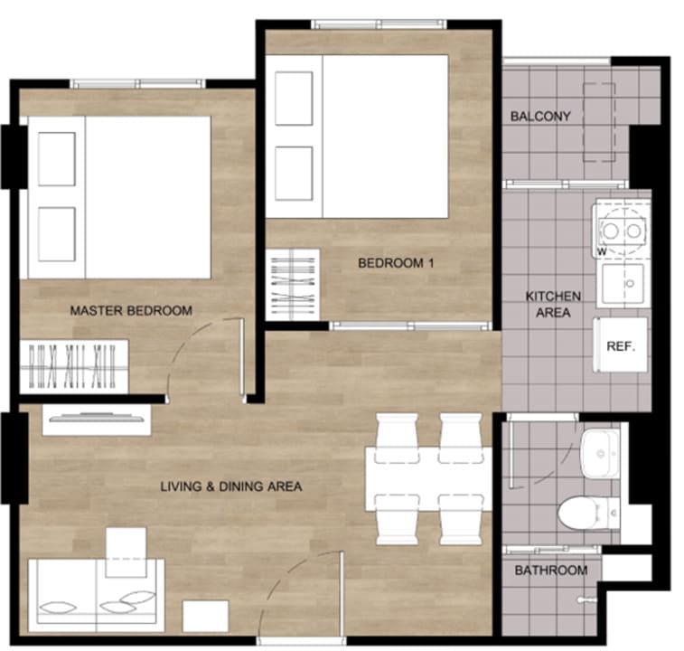 ▼ 两居室 B户型(Type 2A)42.75-43.75 sqm