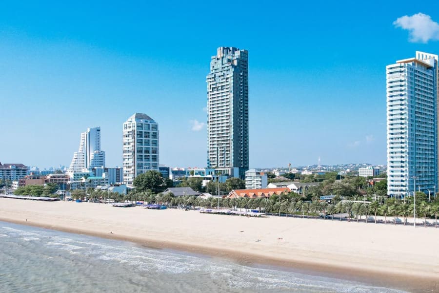 The Jomtien Beachfront Luxury Apartment Project in Pattaya, which won the “Best Luxury Apartment Development (East Coast)” at the Thailand Real Estate Awards 2016, is located on Jomtien Beach Road in Pattaya, and Jomtien Beach is just across the road. The project is close to Jomtien Night Market (200 meters), 800 meters from Local Fishing Market, and 1 km from Big Crab Restaurant. There are convenience stores and many restaurants around.