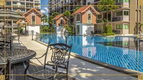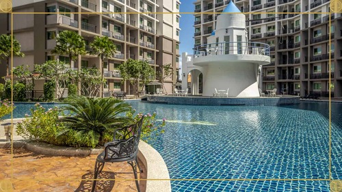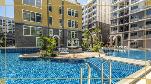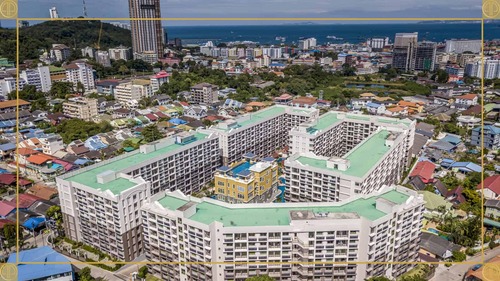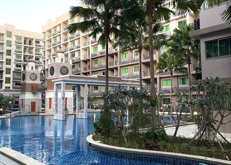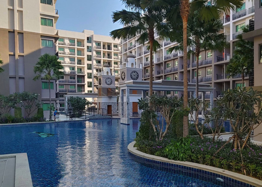 项目位于芭堤雅南,小区为大型水系公寓,距离贯穿南北的市区主路 Thappraya 路 300 米,距离步行街、海滩 1.5 公里,小区门口就有 family mart 超市,周围有各类店铺。