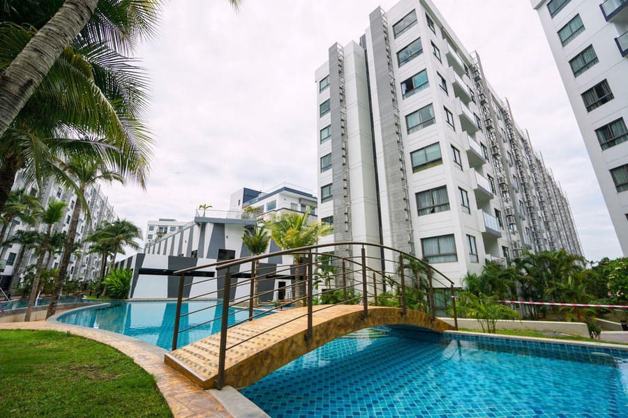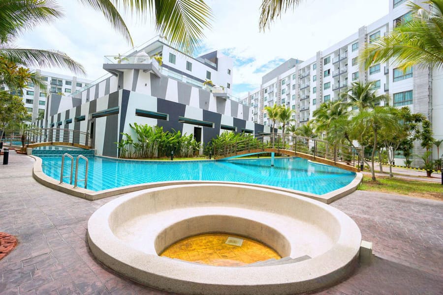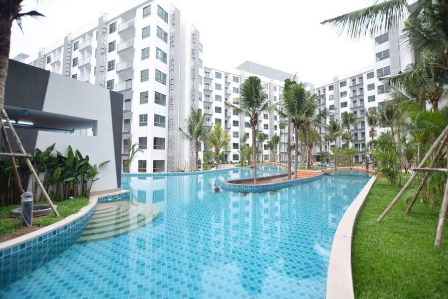 芭提雅南,水系公寓,门口有便利店、周围有夜市、商场、餐饮等众多店铺。项目距离 Thappraya 路 340米,2 公里内可到达步行街、巴里海码头、Yinyom 海滩、水上乐园2公里。