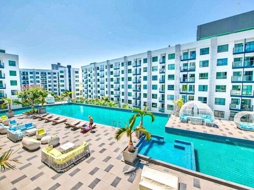 芭提雅南,水系公寓,门口有便利店、周围有夜市、商场、餐饮等众多店铺。项目距离 Thappraya 路 340 米,2 公里内可到达步行街、巴里海码头、Yinyom 海滩、水上乐园2公里。