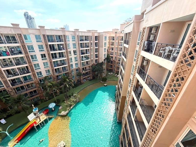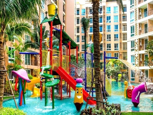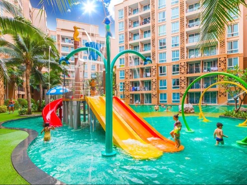 Located next to Jomtien 2nd Road in Pattaya, the project is a pirate ship theme water park apartment, 480 meters from the sea and 6.8 kilometers from Jomtien Hospital. There is a 7-11 and night market next to the apartment.