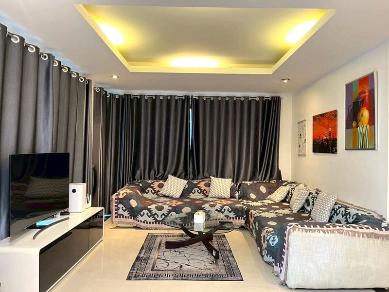 Baan Natcha Estate is located in the center of Pattaya, close to Pattaya 3rd Road (300 meters) and Sukhumvit Road. Enjoying all kinds of facilities in the city center, there are many convenience stores, supermarkets, night markets, and various restaurants around, making life very convenient. Within 2 kilometers, you can reach: Pattaya Beach, Pattaya International Hospital, Terminal 21 Shopping Center, Central Festival Pattaya, HomePro Home Decoration Supermarket, Index Furniture Supermarket, Numchai Home Appliances Mall, etc.