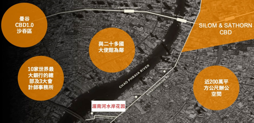 The project is only 3 kilometers away from Bangkok’s CBD Sathorn district. It is surrounded by the headquarters of 10 of the world’s largest banks and three major accounting firms, and is adjacent to embassies of more than 20 countries. It also has nearly 2 million square meters of business office space.