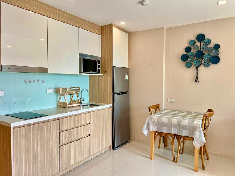 The project is located in Na Kluea, Pattaya. It is 700 meters from Wong Amat Beach, 1.4 km from Terminal 21 and Big C hypermarket (including Decathlon Sports Supermarket), and 2 km from Bangkok International Hospital (Pattaya). The apartment is located in a very quiet seaside living area, surrounded by convenience stores, night markets, etc. It is only 1 km away from the bustling district, and the transportation is very convenient.