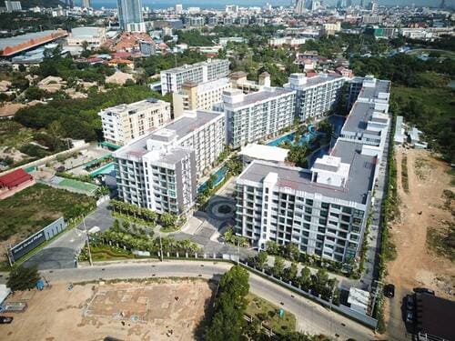 The project is located in Jomtien, Pattaya. There are 7-11 and FamilyMart supermarkets just outside the apartment. Jomtien Beach and the Immigration Office are 1 km away. Close to the Laguna Beach Resort 2 condominium project, surrounded by night markets and municipal parks.