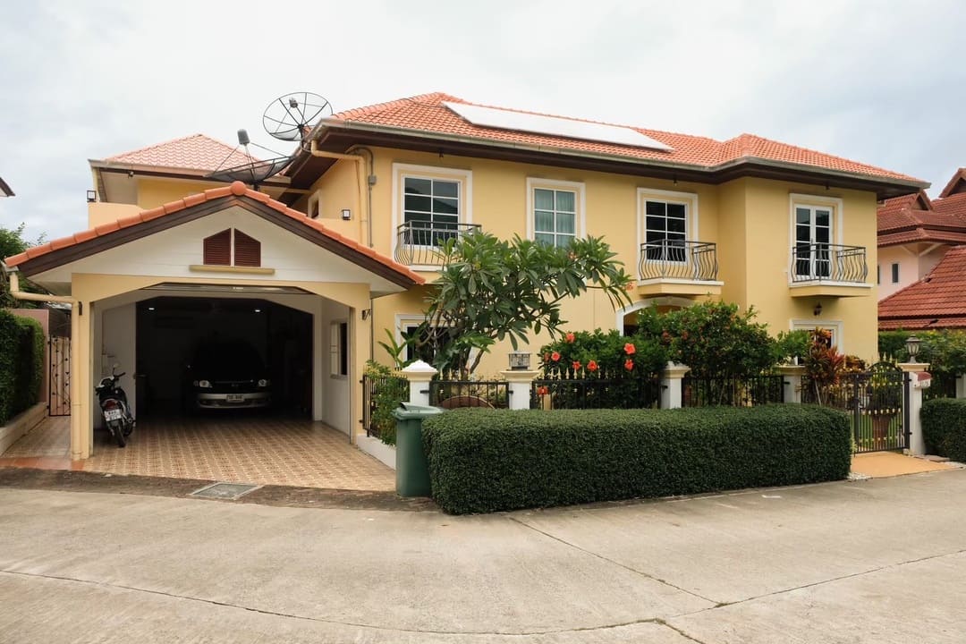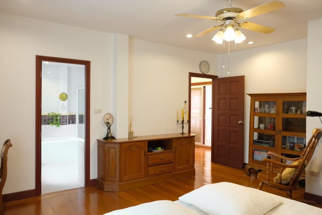 周边生活配套完善,距离 Thara Pattana 国际学校约 7 分钟车程,ผู้ใหญ่กุ่ย 生鲜市场约 4 分钟,附近有寺庙、学校及社区健康公园,日常生活便利;前往 Mabprachan 公园及水库约 14 分钟,前往 芭提雅海滩约 22 分钟,距离 7 号高速(曼谷—春武里)约 10 分钟车程,无论市区通勤或跨城出行均十分方便。