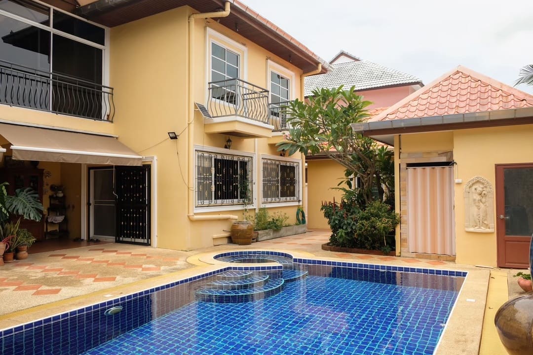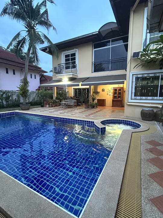 The main house comprises 3 bedrooms and 4 bathrooms, featuring an open-plan kitchen and dining area, a spacious living room, and a separate study suitable for daily living, relaxation, or home office use. The secondary house is fully independent and includes 3 bedrooms and 3 bathrooms, along with a lounge area adjacent to the swimming pool, making it ideal for staff accommodation, guest use, or independent family living with excellent privacy.
