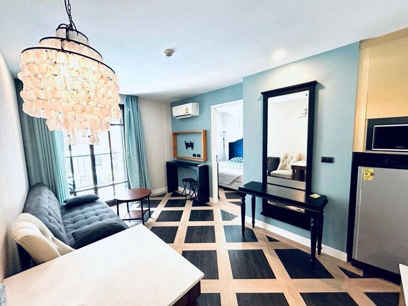 The project is built in the style of a Spanish castle, located on the 2nd floor of Jomtien, Pattaya, next to Lumpini Jomtien Apartment. The project is equipped with a 7-11 convenience store and is 800 meters away from the beach. There are local fish markets, big crab seafood restaurants, Jomtien Night Market, etc. nearby.
