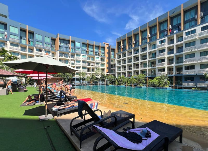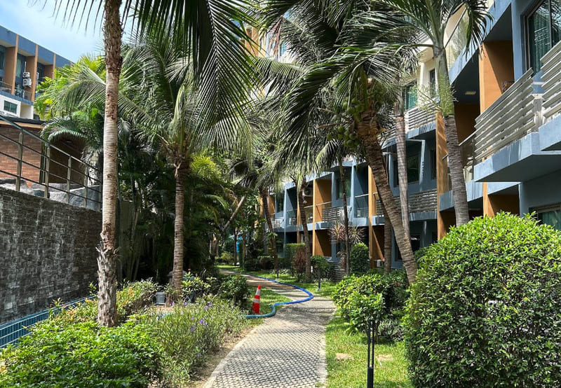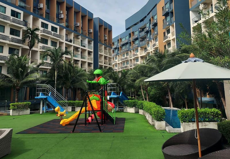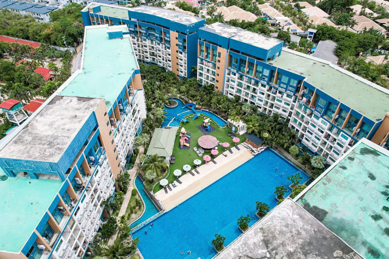芭提雅中天,水系公寓,小区门口有 7-11 和 Tops 两个便利店,距离海滩和移民局1公里。附近有生鲜市场、体育馆、公园等。
