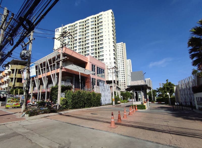 The project is located in the Wong Amat Beach area of Pattaya. Located in a bustling downtown area, the community has a 7-11 convenience store and an ATM; it is surrounded by the Lotus Supermarket flagship store (with a Decathlon sporting goods store inside), Rome Night Market, and various restaurants. It is 1 km from the beach and about 800 meters from Terminal 21.