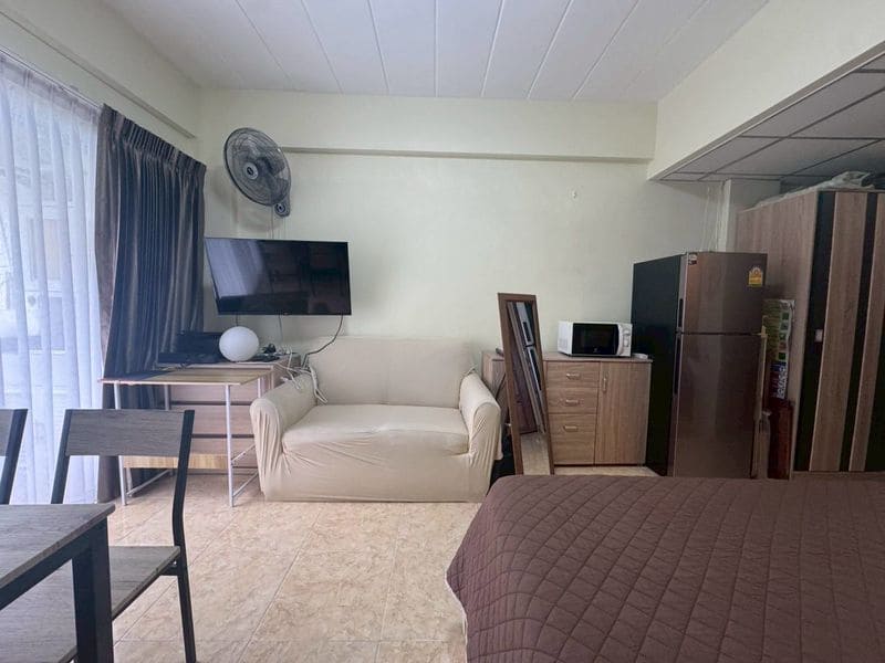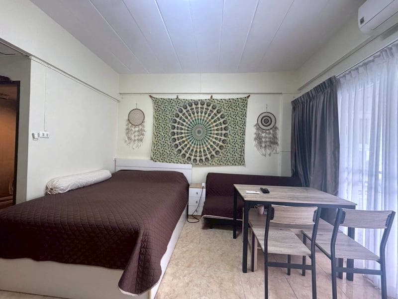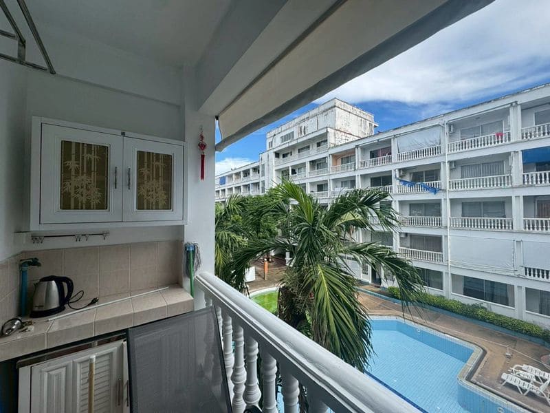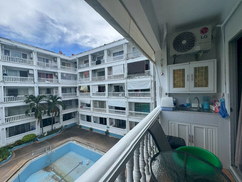 芭提雅中天,1994年的老公寓,非常成熟的海滨生活区,紧邻菜市场,周围有便利店、银行、餐饮等各类店铺。距离:中天 2 路 720 米、中天海滩 1 公里、芭提雅移民局 2.4 公里。