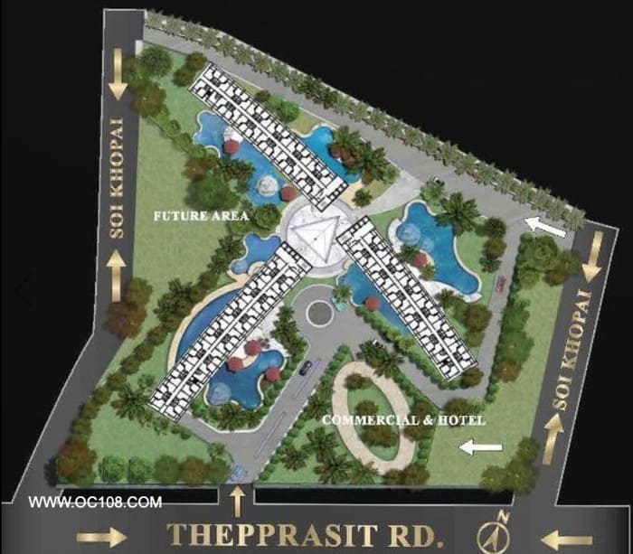 A high-rise condominium project in downtown Pattaya, expected to be completed in December 2024. The project is located on Thepprasit Road in South Pattaya, 2.5 km from Dongtan Beach. Within 1.2 km, you can reach Sukhumvit Road, Thepprasit Night Market, Lotus’s South Pattaya, wholesale fruit market and fresh food market.