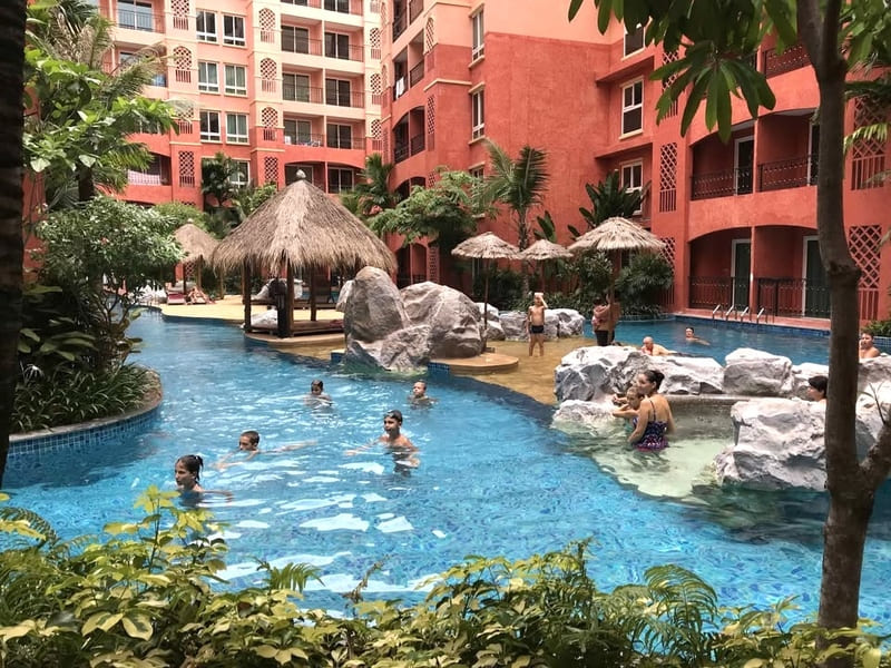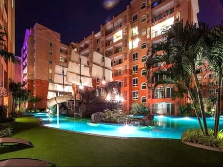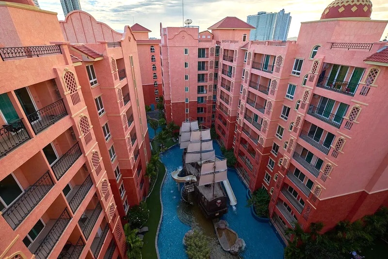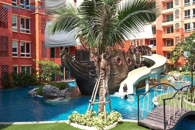 七海1(Seven Seas Condo Jomtien)是泰国最大的主题水系公寓之一。公寓内设有 7 个热带岛屿、泻湖、海盗船、摩艾石像和芭堤雅最长的游泳池相连。梦幻般的景色和水上游乐设施,完全就是儿童的水上乐园。