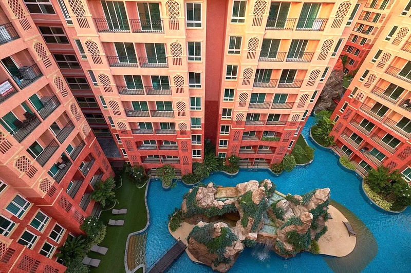 Jomtien 2nd road, pattaya, a large water system apartment, 500 meters away from jomtien beach. There are many supporting facilities, including a 7-11 convenience store and various small shops at the door, making life and travel convenient.