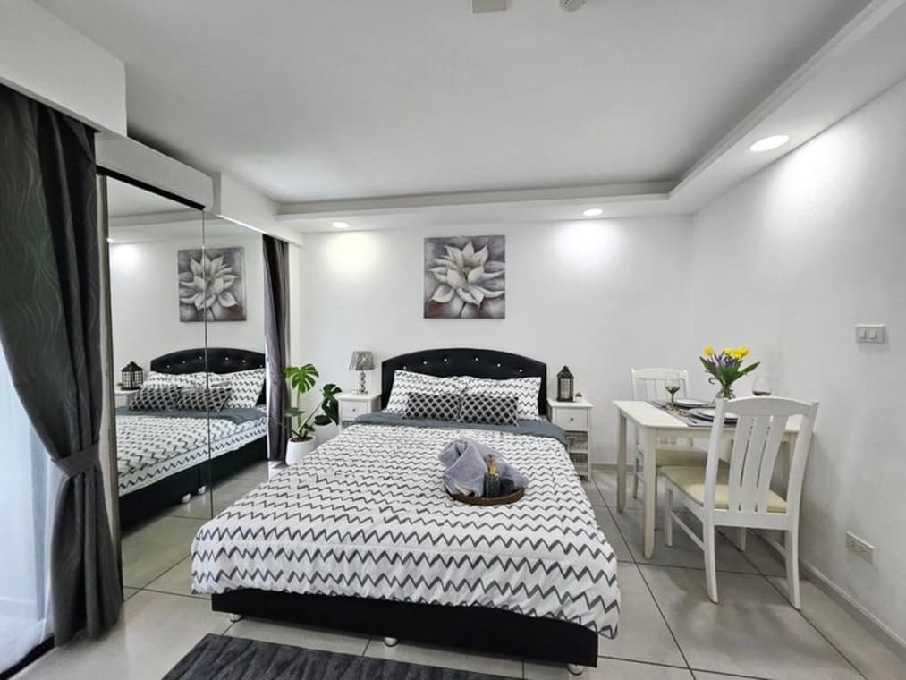 芭提雅帕山,周围有便利店、餐饮店等。距离 Pratumnak 5 路热闹的海滨商业街区 500 米,距离 Yinyom 海滩 700,Yinyom 海滩是热门旅游景区,周围有芭提雅水上乐园、海滨公园、高空滑索餐厅(Pattaya Park Tower Restaurant)、公园夜市等。