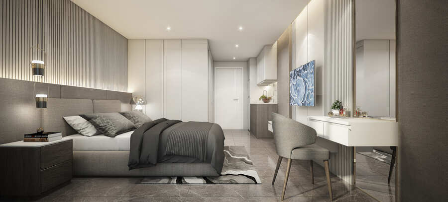 项目为8层度假风格精品公寓,占地 18,250 平米,将于2024年底开工,预计2027年中期竣工,工期30个月。4楼以上可以看到大楼西侧的海景。项目分3期完成,1-2期名为”The Coral Pattaya”,一期3栋楼( A、B、C ),共516个单位;二期3栋楼( D、E、F ), 共555个单位;三期名为“The Coral Pattaya Plus”,2栋楼,共376个单位。总共 1,447 个单位。