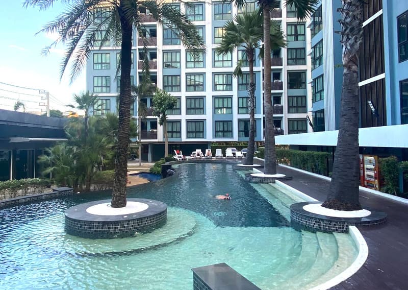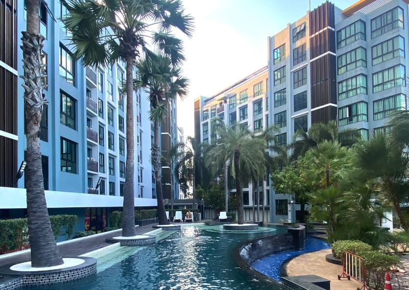 The project is located in Na Kluea, Pattaya, close to Sukhumvit Boulevard and a 300-meter walk from Bangkok International Hospital (Pattaya). This mature residential area is surrounded by convenience stores, markets/night markets, and numerous dining options. Within a 3-kilometer radius are Terminal 21 Shopping Center, the entrance to Highway 7, Makro Supermarket, HomePro Home Improvement Supermarket, Index Furniture Mall, and Numchai Appliance Mall.
