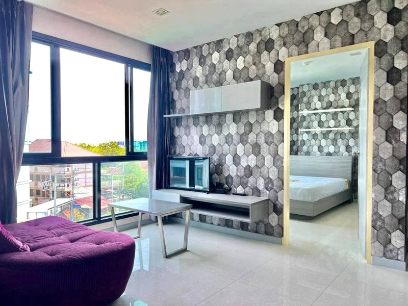 The project is located in Na Kluea, Pattaya, close to Sukhumvit Boulevard and a 300-meter walk from Bangkok International Hospital (Pattaya). This mature residential area is surrounded by convenience stores, markets/night markets, and numerous dining options. Within a 3-kilometer radius are Terminal 21 Shopping Center, the entrance to Highway 7, Makro Supermarket, HomePro Home Improvement Supermarket, Index Furniture Mall, and Numchai Appliance Mall.