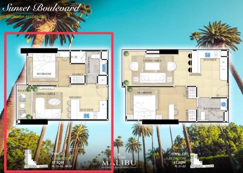 The Riviera Malibu 是一栋拥有 279 套五星级豪华私人住宅的全新公寓,户型从 30 平方米的 1 居室到 191 平方米的 4 居室顶层公寓,分布在一栋 L 形 29 层高层建筑中。绝大多数单位可欣赏芭堤雅海湾、小珊瑚岛或中天海滩的壮丽全景海景。项目由泰国领先的房地产开发商之一里维埃拉集团有限公司 (Riviera Group Co., Ltd.) 开发建设,该公司从不让人失望。以其标志性的卓越设计和令人惊叹的装饰。