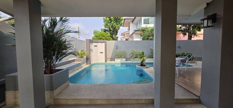 该别墅位于芭提雅中天(Jomtien)Chaiyaphruek区域的 View Point Village 社区内,为独栋双层私人泳池住宅。项目距离素坤逸大道约350米,交通出行便利;距离中天海滩及中天当地渔市(Local Fishing Market Jomtien)约1.1公里。周边生活配套较为齐全,邻近水上市场、中天医院及莲花大型超市等设施,日常购物及生活需求可在短距离内完成。