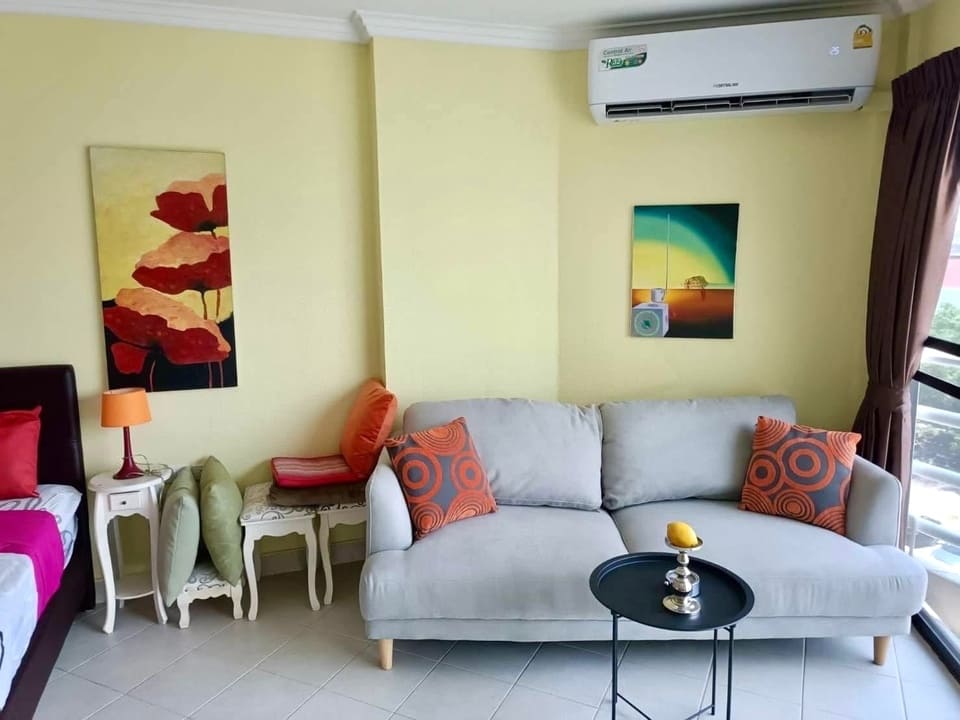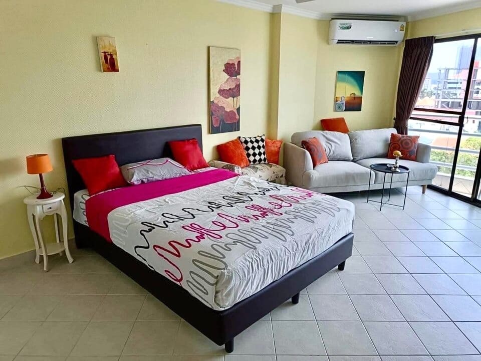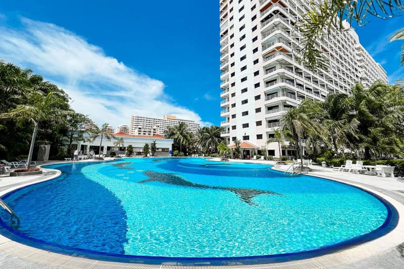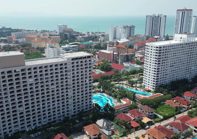 位于芭提雅中天,地处中天、帕山和芭提雅南交汇处,紧邻中天 2 路,距离海滩 600 米、移民局 700 米、中天长途巴士站(有机场巴士)450 米。小区大门口有双条车可以搭乘,小区一楼设有小卖部、游泳池。周围有 Tops 便利店(50米)、7-11便利店(80米)、餐饮等店铺。