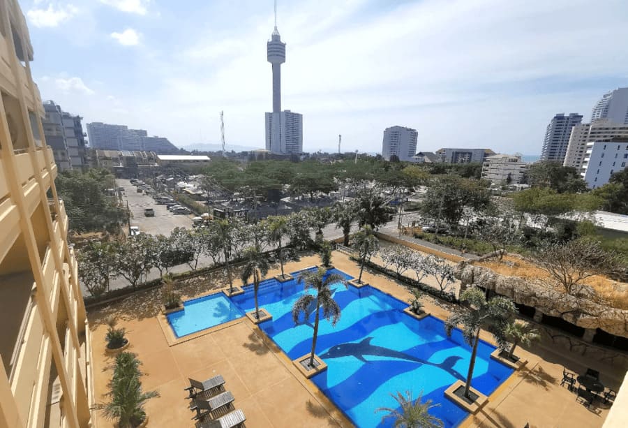 从项目步行约 700 米即可到达 Phratamnak 5 路的海滨商业街核心区域,该区域汇集了大量餐厅、咖啡厅与休闲场所,是帕山片区最主要的生活与旅游活动中心;步行约 750 米即可抵达 Yinyom 海滩,该海滩是芭提雅知名且深受游客欢迎的旅游海滩之一,周边配套资源十分丰富,包括芭提雅水上乐园、海滨公园、高空观景塔及旋转餐厅(Pattaya Park Tower Restaurant)等多项旅游与休闲设施。整体来看,View Talay Residence 5 不仅具备良好的居住环境,也拥有突出的度假属性与稳定的出租需求基础,非常适合用于自住、度假或投资出租。