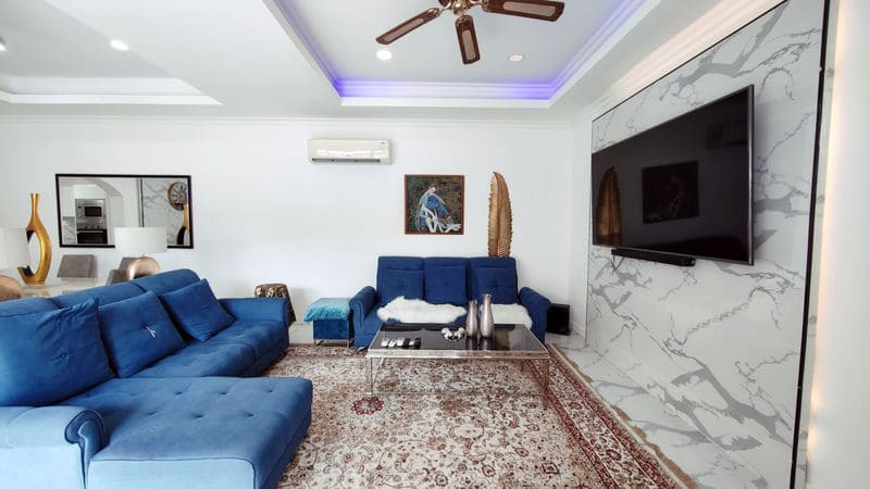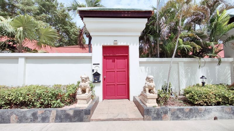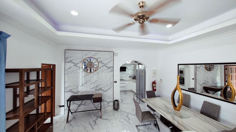 Next to Jomtien 2 Road in Pattaya, it is a large brand villa area, close to Pattaya Immigration Office (150 meters) and Jomtien Beach (450 meters). The roads in the villa area are spacious and the environment is quiet, clean and safe. There are large night markets and markets next to the villa area, surrounded by banks and various restaurants.
