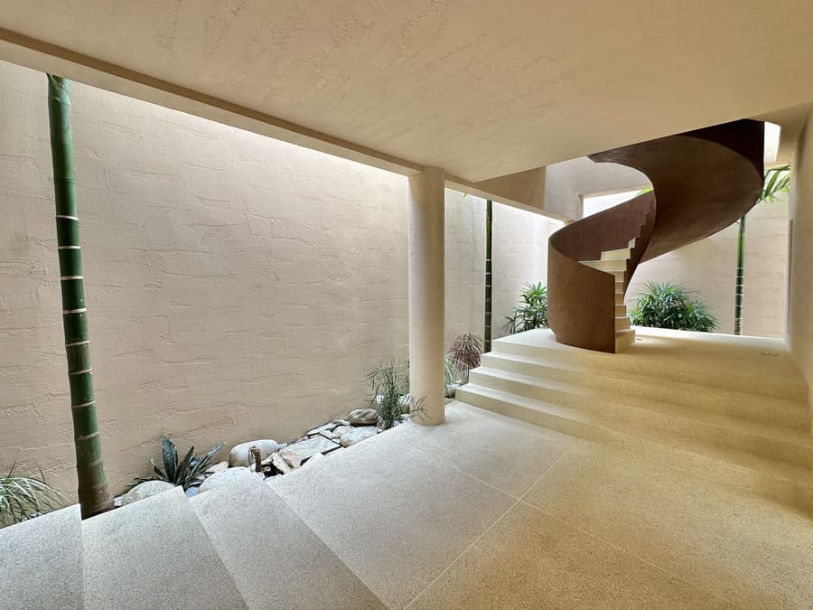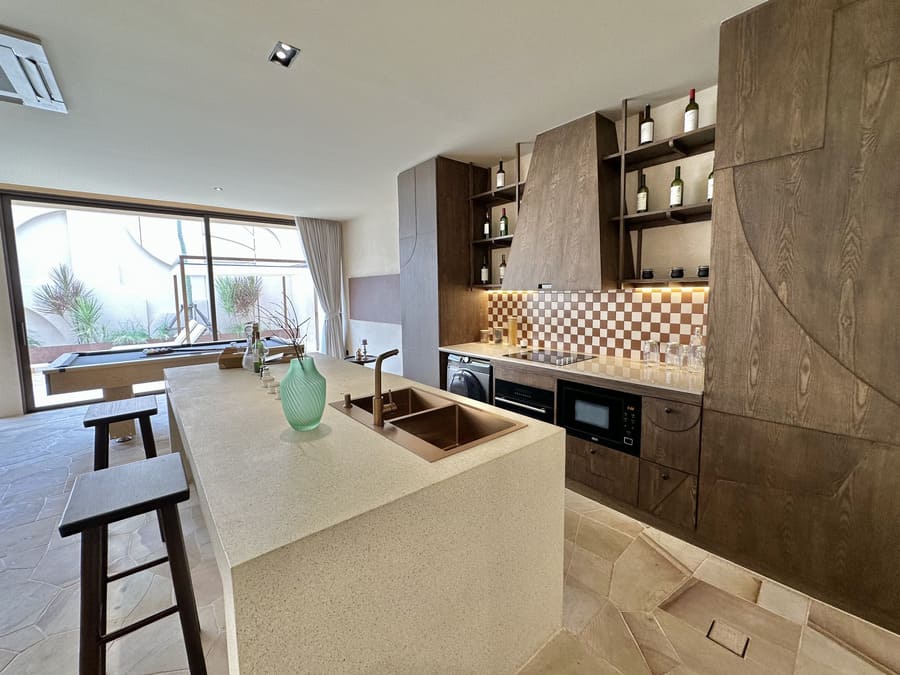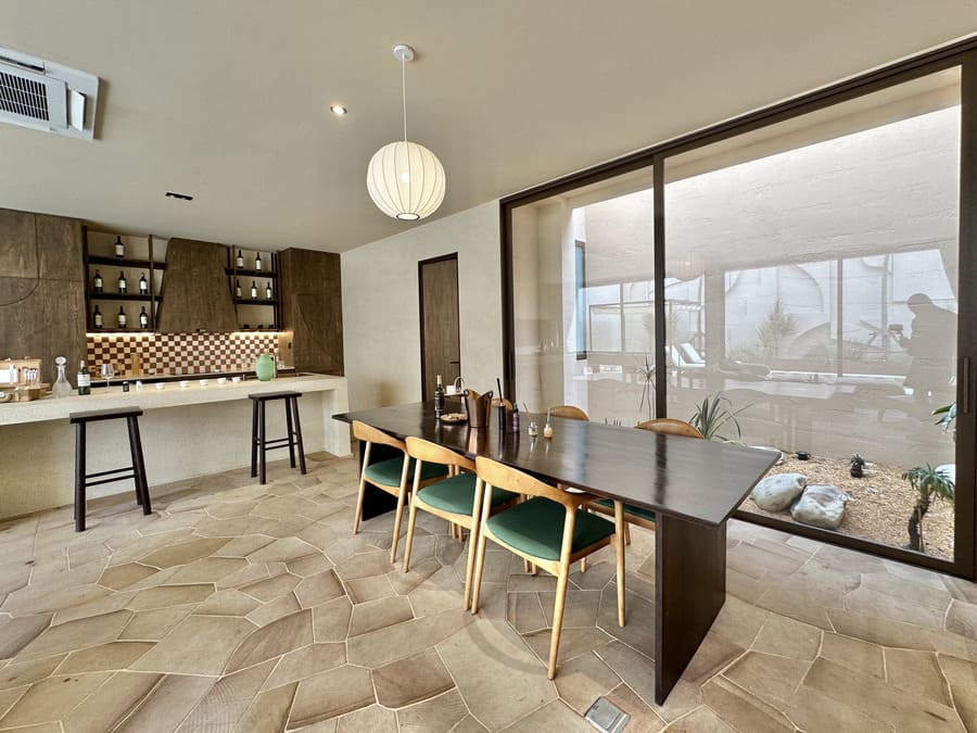 这是一栋名为 “Villa Barrera” 的私人别墅,位于约 544 平方米的独立土地上,以现代摩洛哥风格打造,两层结构、约 450 平方米的室内使用面积,使整体空间宽敞舒适。别墅外观采用高墙围合设计,兼具隐私性与异域度假氛围;中央泳池作为庭院视觉核心,与大面积落地玻璃相互呼应,让自然光线与水景渗透室内,营造静谧而富有格调的居住体验。室内配置五间卧室与六间浴室,开放式客厅与中岛厨房通透明亮,动线适合家庭生活、度假或接待宾客。户外设有 Jacuzzi、休闲区及精致景观庭院,整体氛围惬意放松;可停放最多六辆车的车位更在市区别墅中极为少见。