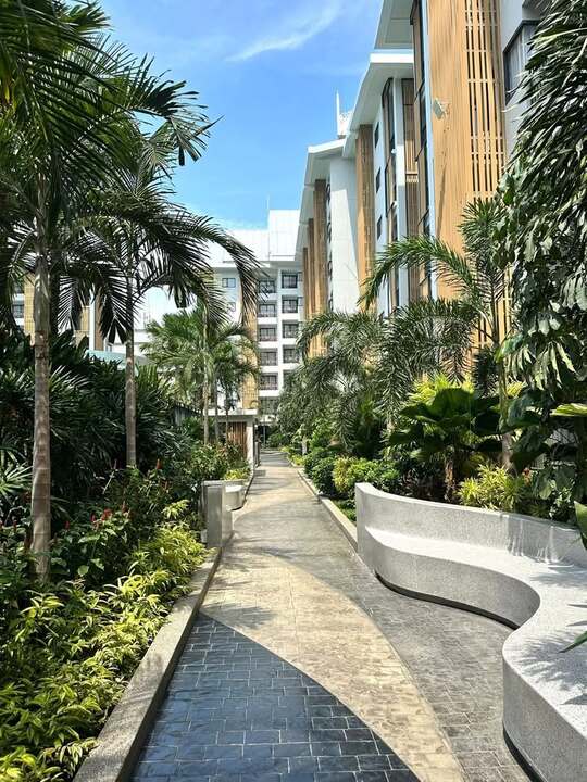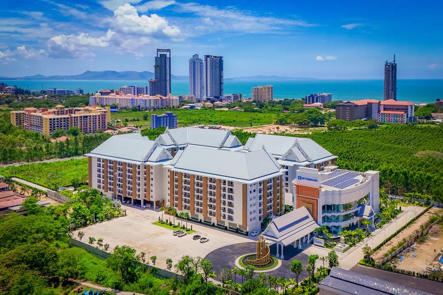 项目为“温德姆”品牌管理的度假型酒店公寓综合体,整体品质与配套按照五星级酒店标准配置。项目内设有泳池、健身房、Spa 区域、宴会及会议功能区、园林景观、停车位以及 24 小时安保与礼宾服务,既可满足短期度假需求,也适合中长期居住。区位方面,项目距离中天海滩(Jomtien Beach)及著名的大螃蟹海鲜餐厅约 1.2 公里,沿海一带分布有多家海景餐厅、咖啡馆及日常餐饮场所,生活选择较为丰富。周边亦邻近 Tiger Park、Pattaya Floating Market(四方水上市场)、Ocean Marina Yacht Club(游艇码头)及 Columbia Pictures Aquaverse(水上乐园)等常见旅游目的地。依托 Sukhumvit Road 主干道,前往 Central Festival Pattaya、Terminal 21 Pattaya 等大型商场约 20 分钟车程,日常出行和购物较为便利。