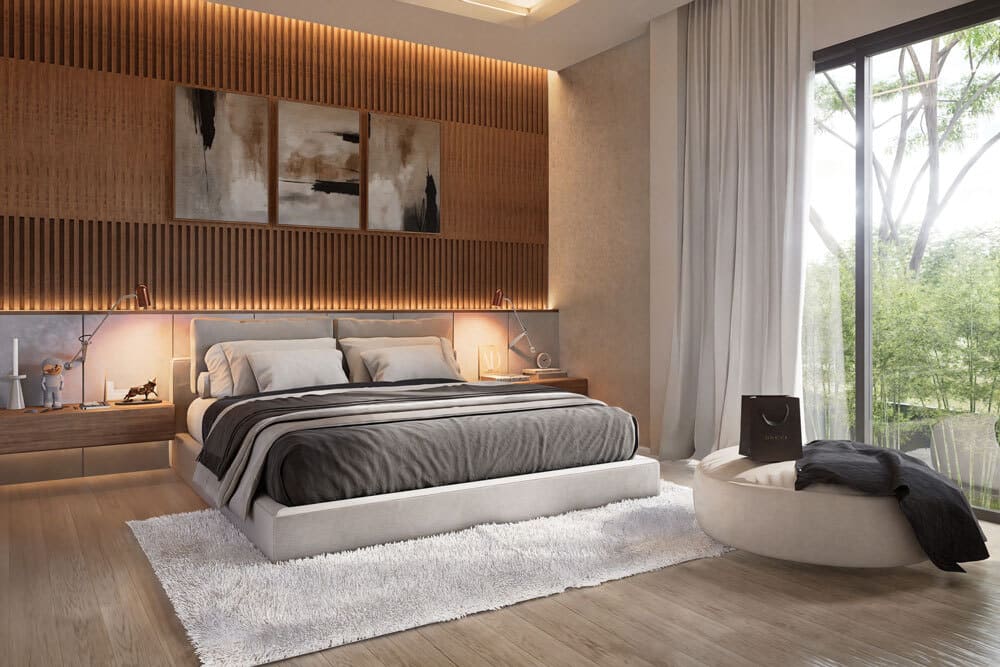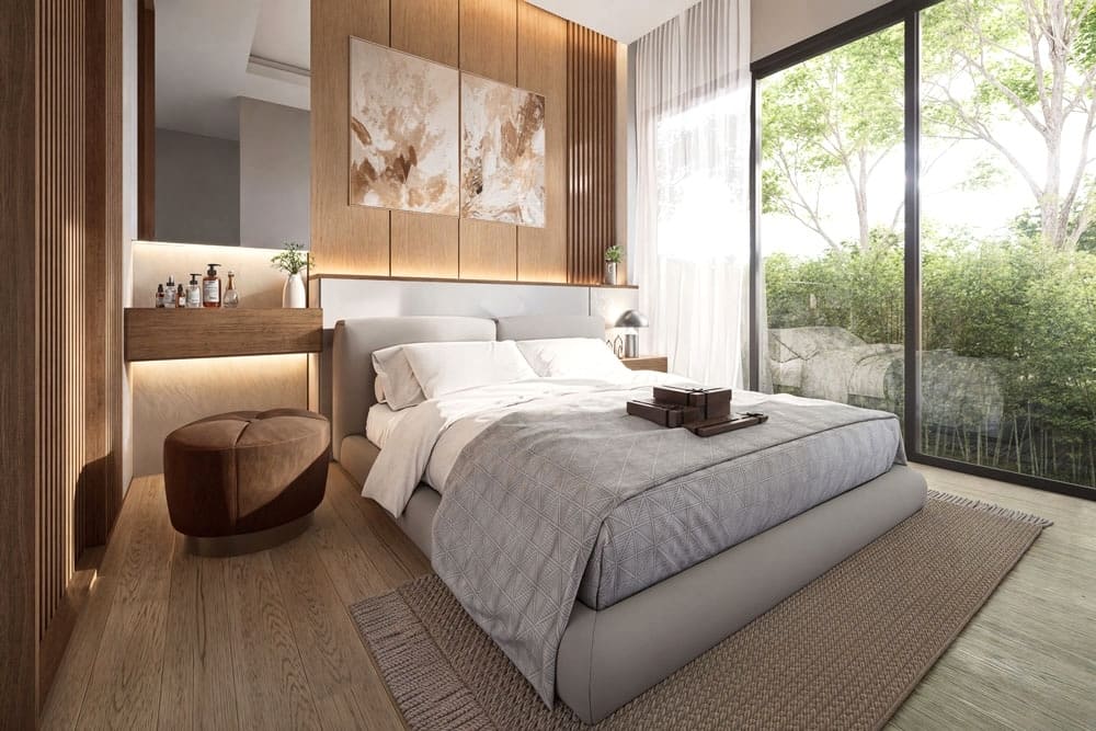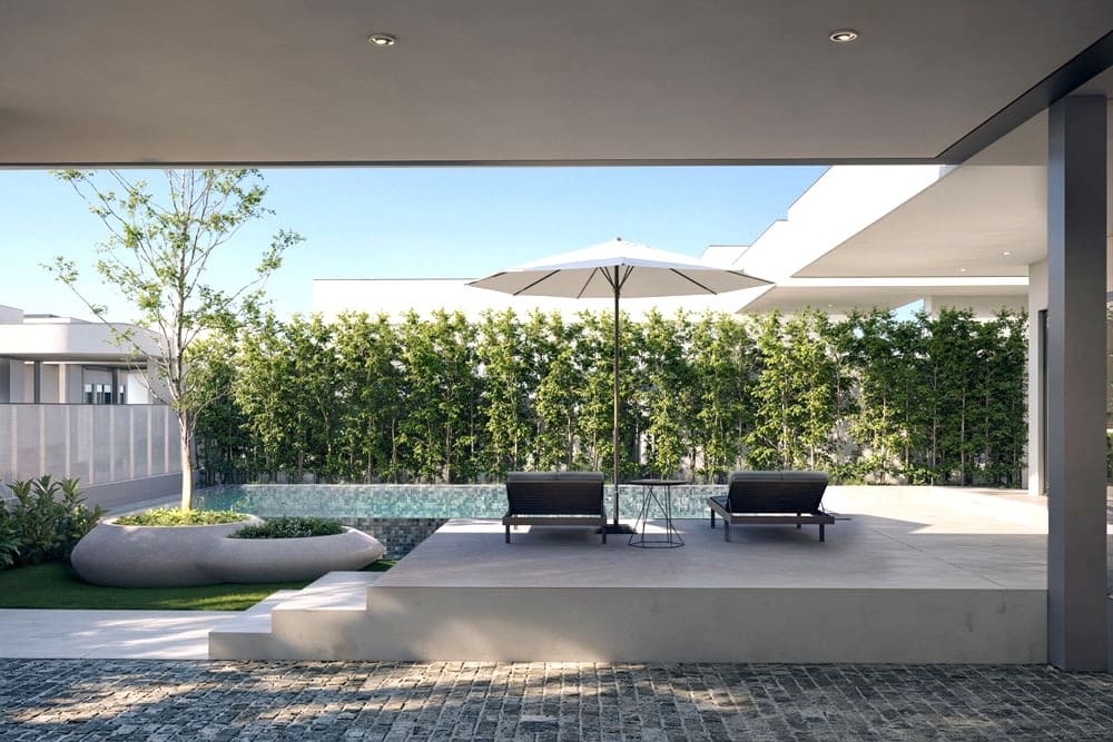 每栋别墅均设有私人泳池,是沐浴阳光或畅游清凉的理想场所,私密性极佳。别墅内部,现代优雅与日常舒适完美融合。宽敞的起居区配备雅致的家具、高品质的便利设施和宽大的玻璃门,将室内外空间无缝衔接。设备齐全的厨房让您轻松享受居家用餐的乐趣,而奢华的卧室则为您提供深度休息和放松的体验。